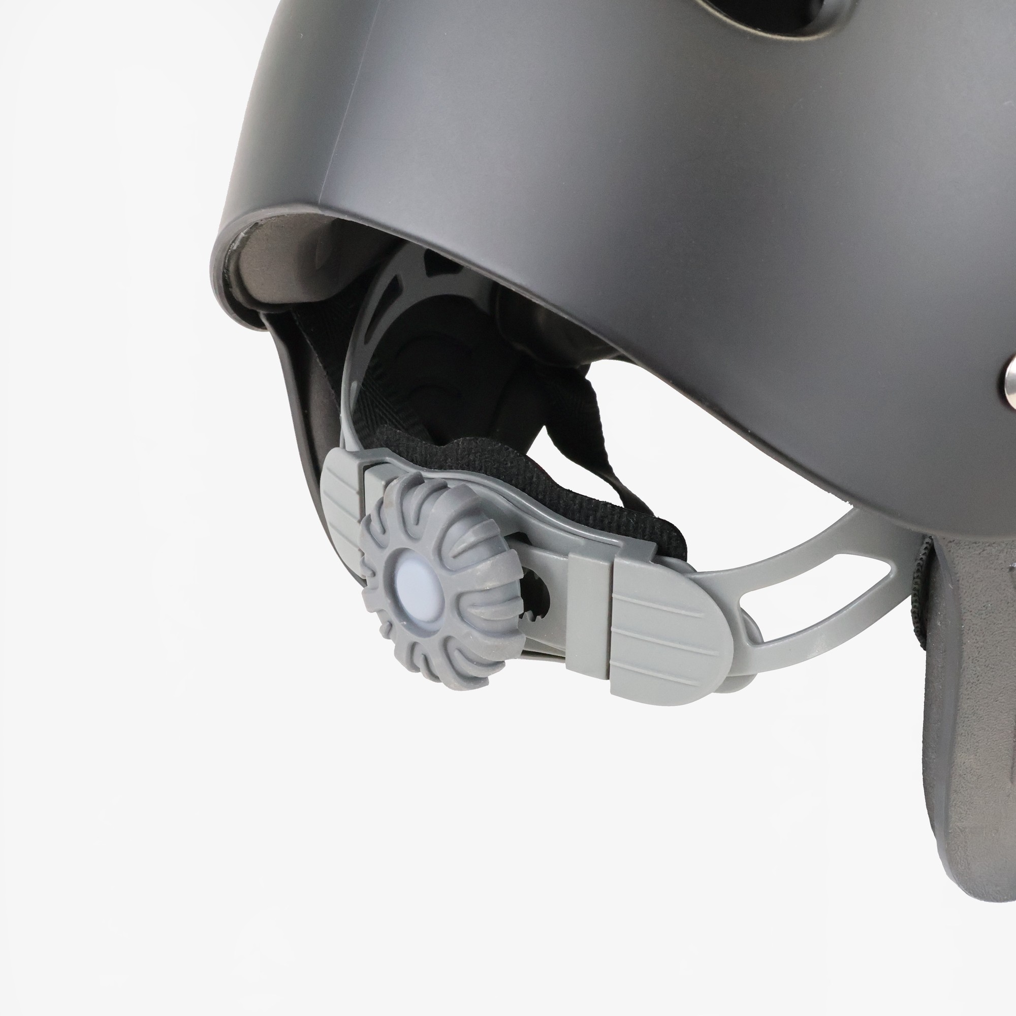 Kinnriemen und dem Drehverschluss am Hinterkopf lässt sich der Helm individuell und sicher anpassen. Die herausnehmbaren EVA-Ohrpolster schützen