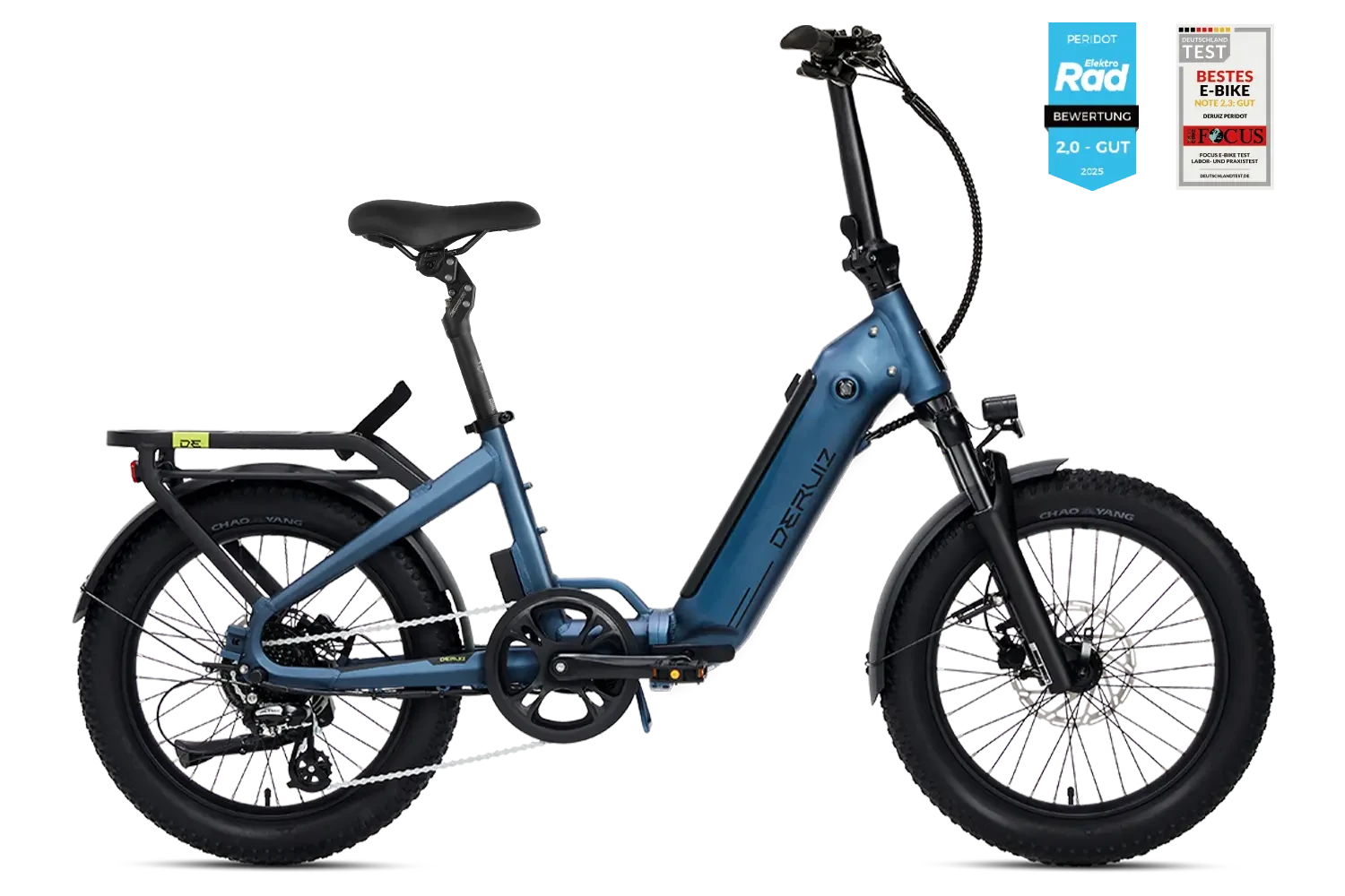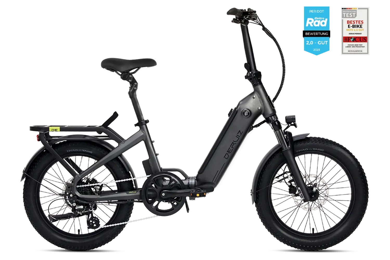 | Gepäckträger | DERUIZ Quick Connect System, max 50kg zuladen, mit Adapter und optionalem Zubehör |
