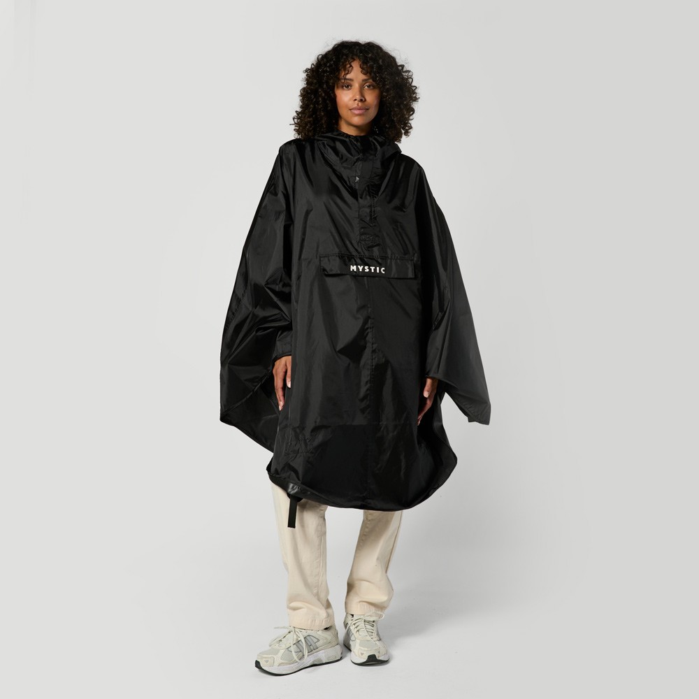 A classic rain poncho, done the Mystic way. Made from 100% recycled polyester with taped seams and a 2000mm waterproof rating, built to keep you dry from the beach to the bike lane. The oversized fit makes it easy to throw on when the weather turns, while adjustable leg and wrist straps keep it locked in place. Finished with a kangaroo pocket and Mystic branding at the flap.